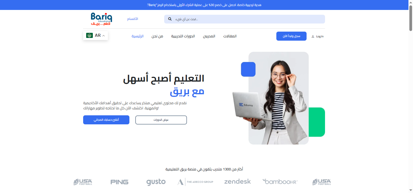 Bariq Education is a modern e-learning platform designed to provide engaging, high-quality educational content for Arabic-speaking students across various age groups.